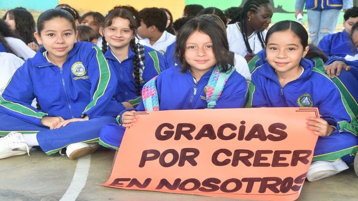 "Estamos muy contentos, porque les estamos dando la bienvenida, junto con 12.000 maestros y directivos docentes. Les decimos a todos los niños y jóvenes de Medellín que lleguen a sus colegios, que las puertas están abiertas y que es el colegio ese lugar donde pueden materializar todos sus sueños, por eso es su entorno protector por excelencia", dijo el secretario.