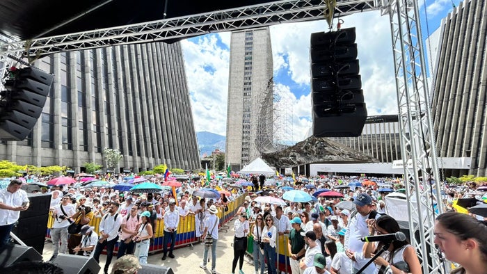 Con banderas de Antioquia y de Colombia fueron llegando los cientos de antioqueños que asistieron este sábado a La Alpujarra, en Medellín, para rechazar la visita del presidente Gustavo Petro y su encuentro con nueve delincuentes que, en la actualidad, se encuentran condenados en la cárcel La Paz de Itagüí.