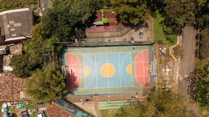 Unas 130 familias de la comuna 14 – El Poblado se beneficiarán con la renovación de la cancha El Garabato, ubicada a un costado de la UVA Ilusión Verde. Las labores de limpieza, pintura, adecuación y reparación tuvieron un costo de diez millones de pesos.