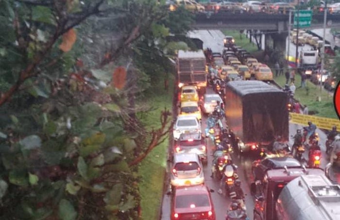 Igual que en la jornada de ayer, representantes del gremio taxista en el Valle de Aburrá bloquearon ambas calzadas sur-norte a la altura de la estación Envigado, lo que ha generado una mayúscula congestión vehicular.