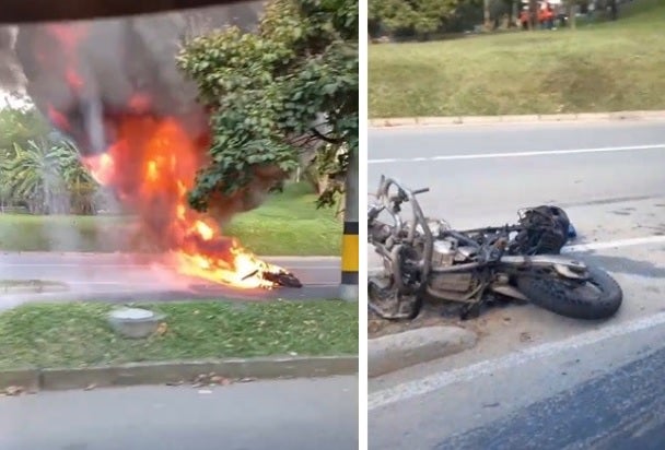 Motocicleta del tránsito quemada en medio de protestas en Medellín