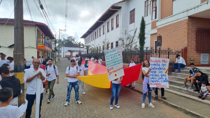 A través de un comunicado, los lideres de esta marcha informaron que en la visita del presidente a su región para discutir el proyecto de la Quebradona y otras problemáticas “llegaron por lo menos 15 chivas y distintos carros que transportaban a personas de otras regiones de Colombia y que no conocen de la realidad de nuestro municipio” Afirmó Jhon Jairo Henao de la organización Jericoanos con Visión.