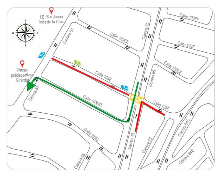 - Cierre total de la calle 103E entre las carreras 65 y 67