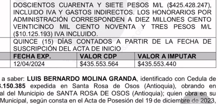 Un contrato firmado por 435 millones de pesos, sería la hoja de ruta para desatar, según Carlos Roldán Berraquera, personero del municipio de Santa Rosa de Osos, un presunto acto de corrupción por parte de la actual administración.