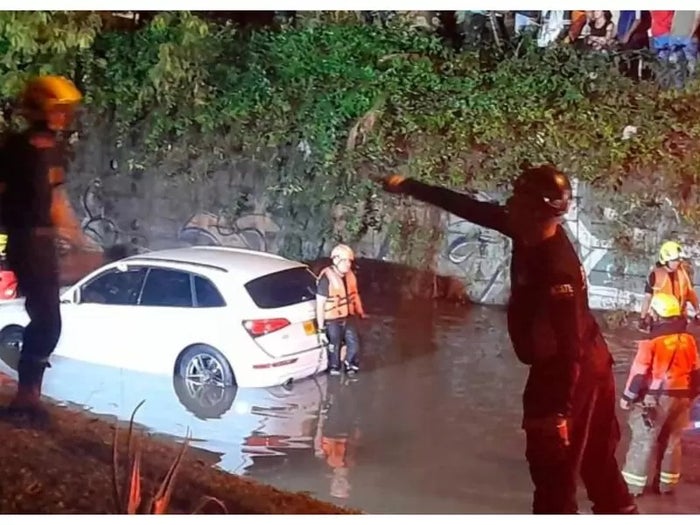El Departamento Administrativo de Gestión del Riesgo de Desastres (DAGRD) llegó al lugar para atender un llamado de emergencia, pero ya había ocurrido la tragedia al interior del carro color blanco de marca Audi.