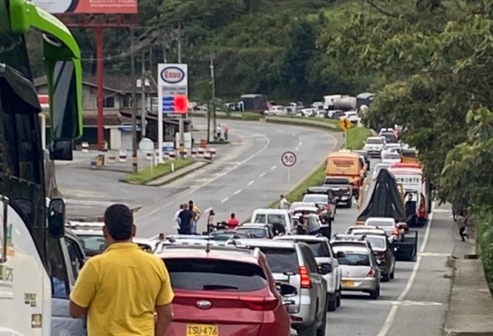 De la misma manera, en la variante a Caldas, sur del Valle de Aburrá, se presentan bloqueos por parte de algunos manifestantes en el kilómetro 56 +300 en el sector conocido como La Miel.