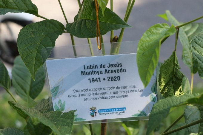 Los árboles Guayacanes, sembrados en honor a las víctimas mortales del coronavirus en La Estrella, se plantaron con el nombre de cada fallecido y con el mensaje: “este árbol como un símbolo de esperanza, evoca la memoria de aquellos que hoy ya no están pero que vivirán para siempre”.
