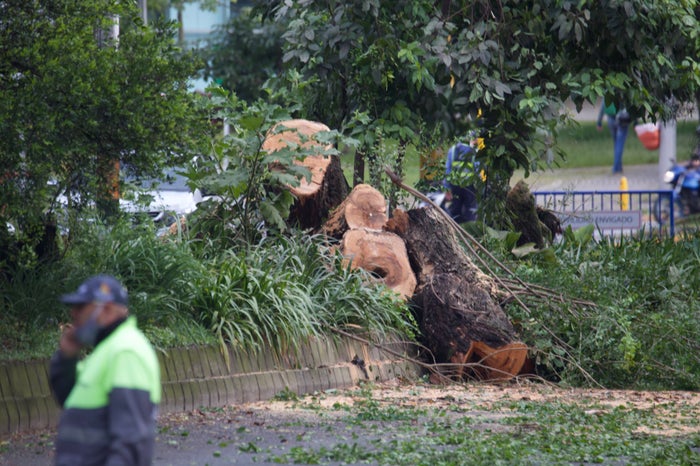 El vocero del Colectivo La Ciudad Verde, Alejandro Álvarez, contó que con el apoyo del Esmad, la Policía y funcionarios de la Alcaldía de Envigado cortaron los árboles sin avisarle a la comunidad ni con los permisos respectivos.