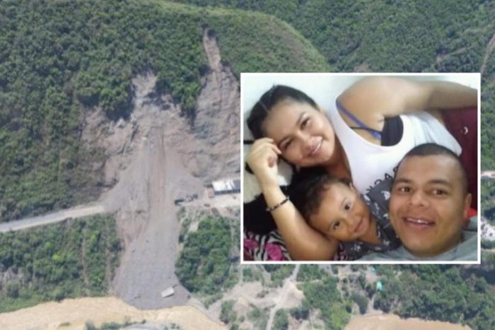 Cabe recordar que en este deslizamiento cayeron más de 40.000 metros cúbicos de tierra. En este lugar estarían atrapados Ana María Calvo, de 21 años; su esposo Edwin Andrés Guevara, de 29; el hijo de ambos de 2 años; y un hombre que intentó recuperar su motocicleta.