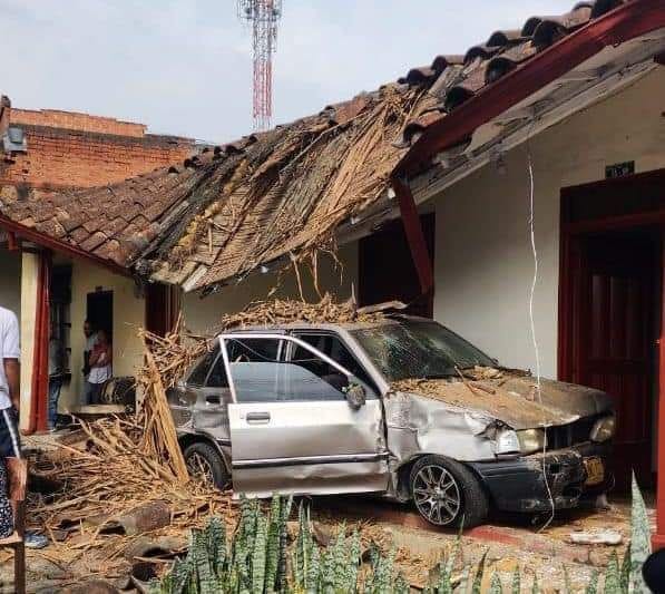 Un aparatoso accidente se registró en las horas de la mañana en la calle 55 sur con 55, en el corregimiento de San Antonio de Prado, un vehículo particular chocó contra la fachada de una vivienda, este automóvil también había colisionado con una moto metros antes.