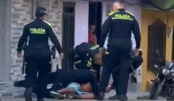 Uno de los oficiales se vio obligado a propinarle una cachetada al joven para calmarlo y asegurar el control de la situación.