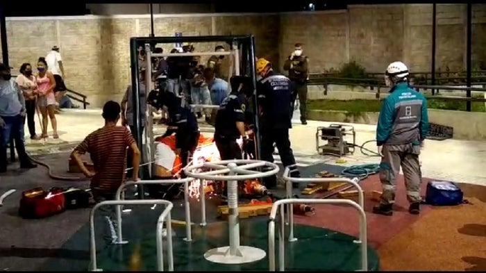 Momentos de angustia vivió un menor de edad, de unos 12 años, al quedar su pie atrapado en una plataforma de atracción en un parque ubicado en la calle 50 entre carreras 34 y 35 del barrio Buenos Aires, en el centro oriente de la capital antioqueña.