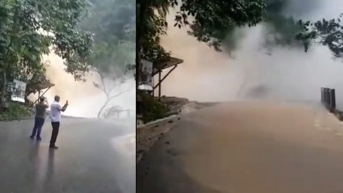 [Video] Desborde de una cascada no dejó pasar los vehículos en San Luis, Antioquia