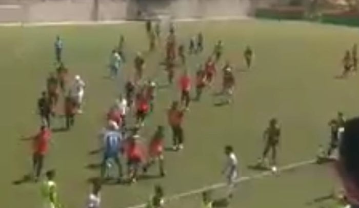 En las imágenes que se hicieron virales en redes sociales, se muestra el momento en que los jugadores juveniles terminaron en tremenda "batalla campal" luego que el equipo visitante ganara el compromiso desde el cobro del punto penal.