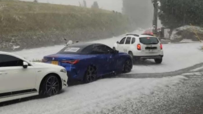Una fuerte granizada, acompañada de intensas lluvias sorprendió a los conductores, habitantes y transeúntes del sector Alto de Las Palmas del barrio El Poblado, parte alta del suroriente de Medellín.