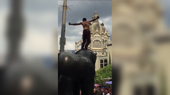 Un video que se hizo viral en las redes sociales, mostró como un habitante de calle tomó literalmente como pista de baile la escultura del caballo del maestro Fernando Botero ubicada en el centro de Medellín.
