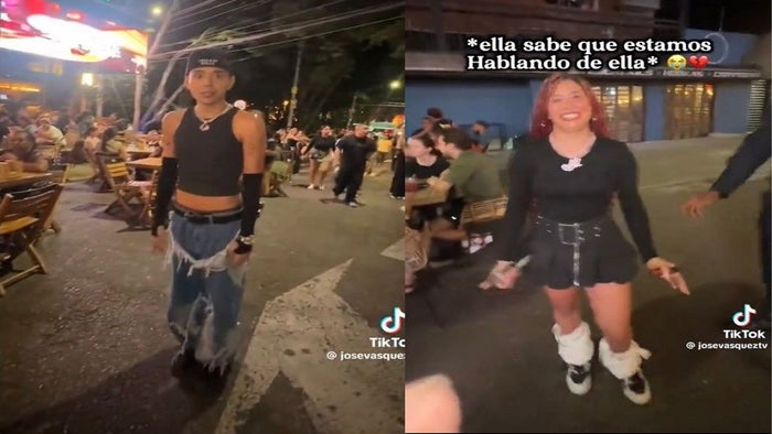 Según el video publicado por Vázquez, en el momento que se dirigían hacía uno de los restaurantes, llegó esta persona y les dijo que no podían seguir caminando por esa calle porque la vestimenta de la mujer, su hermana de 17 años de edad, “no era la apropiada”.