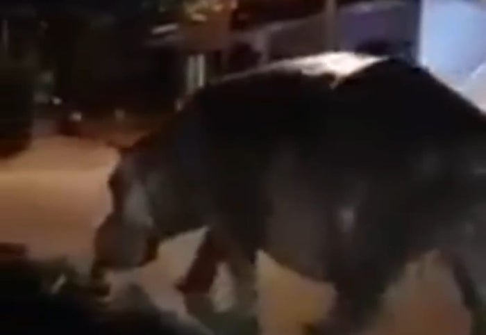 Los habitantes de Doradal, corregimiento de Puerto Triunfo, (Antioquia) grabaron que en medio de la noche un hipopótamo pasaba en medio de una vía púbica, mientras los perros ladraban.