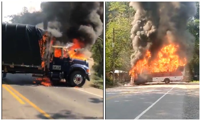 Capturas de pantalla Paro minero: quemaron seis vehículos en las vías de Antioquia