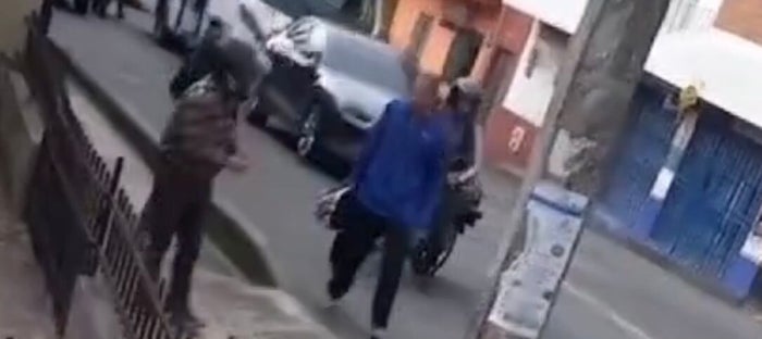 Le pegó, lo acorraló, lo insultó, lo intimidó, lo amenazó y hasta su moto le tumbó: así reaccionó de manera violenta un hombre en el municipio de Envigado, sur del Valle de Aburrá, en medio de la discusión con otra persona en plena vía pública.