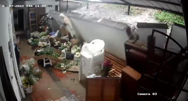 [Video] Tremendo susto: Muro de una iglesia se vino abajo en El Poblado