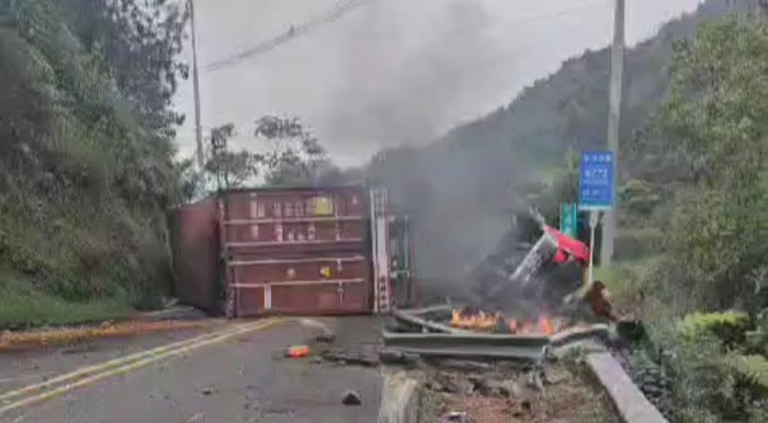 Un tractocamión, que cubría la ruta Buenaventura - Bucaramanga, se volcó lateralmente, dejando a su conductor atrapado entre los hierros retorcidos de la cabina.