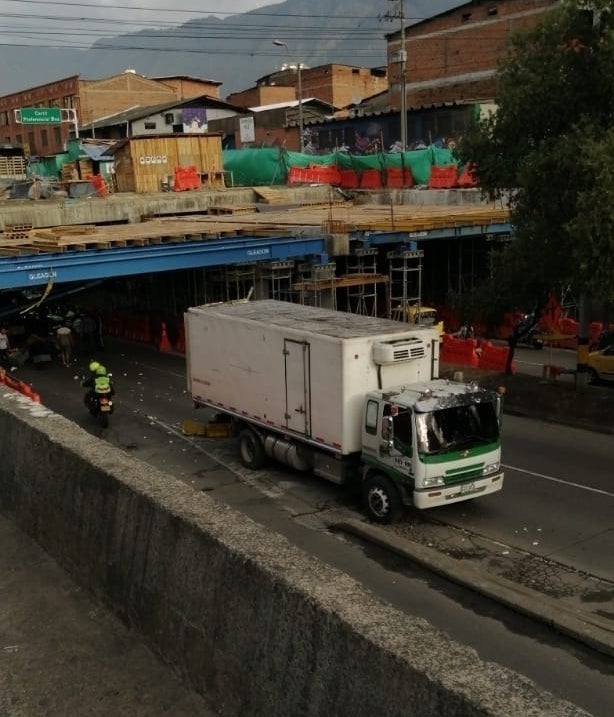El accidente se presentó en el deprimido de Villanueva, en pleno centro de Medellín, donde un camión, que se desplazaba en sentido oriente - occidente, colisionó con elementos no estructurales de una obra que se adelanta en el sector.