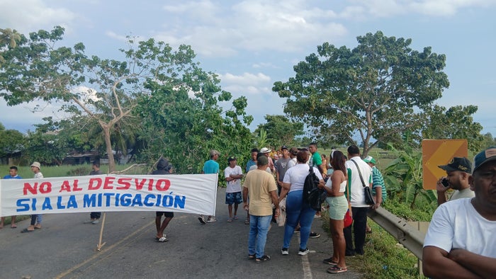 La protesta es liderada por habitantes de Puerto Rey, quienes reclaman el desvío de una carretera que está planeado ejecutarse, lo que ocasionaría que la población quede retirada, provocando pérdidas en el turismo porque están a orillas del mar y afectaciones en el comercio.