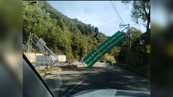 Luis Bernardo Morales capitán de Bomberos de este municipio del Sur del Valle, explicó que el accidente se presentó cuando la buseta descendía por el sector de San Diego, hacia Medellín y en ese momento un carro particular lo cerró, haciendo que el automotor escolar golpeará la base del letrero y éste cayera sobre el mismo.