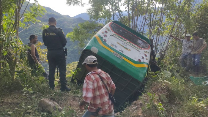 Buseta quedó suspendida de un árbol en Abejorral, dejando heridos de gravedad