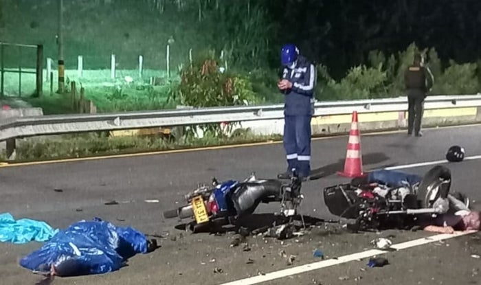 Dos personas murieron al chocar sus motos en el sector de la Aldea en la vía que comunica a Medellín con el municipio de San Jerónimo, en el occidente antioqueño.