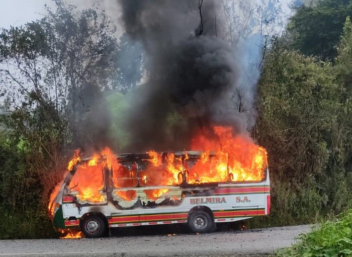 "Al día de hoy ya han sido cinco los vehículos que han sido incinerados en los principales corredores viales. El Ministerio activó la póliza antiterrorismo pero no se dan las garantías para trabajar, hay empresas que no han tenido la posibilidad de llevar sus vehículos a los municipios", manifestó Echeverri.
