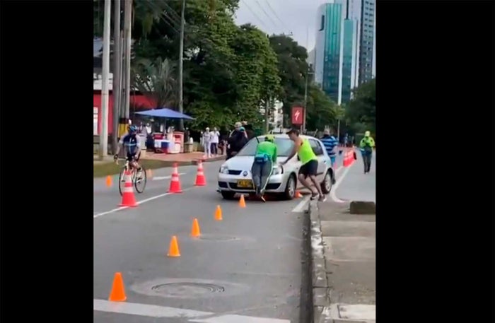 Uno de los video clips publicados en Twitter capta el momento en que mientras el el automóvil ingresa a la ciclovía, unos ciudadanos ubican al frente y costados del automotor en un intento de que el vehículo se detenga. Pese a que el carro estaba rodeado por personas, en ningún momento el vehículo detuvo su movimiento sobre la vía por lo que la situación pudo haber desencadenado una lamentable tragedia.