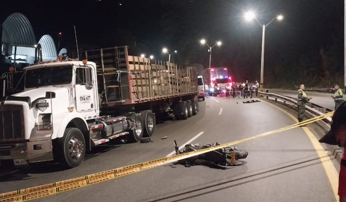 El lamentable hecho se presentó en el kilómetro 9+200, sector los contenedores y según el reporte de la Seccional de Tránsito de la Policía de Antioquia; las víctimas mortales son dos hombres que se movilizaban en moto y que fueron arrollados por un camión.