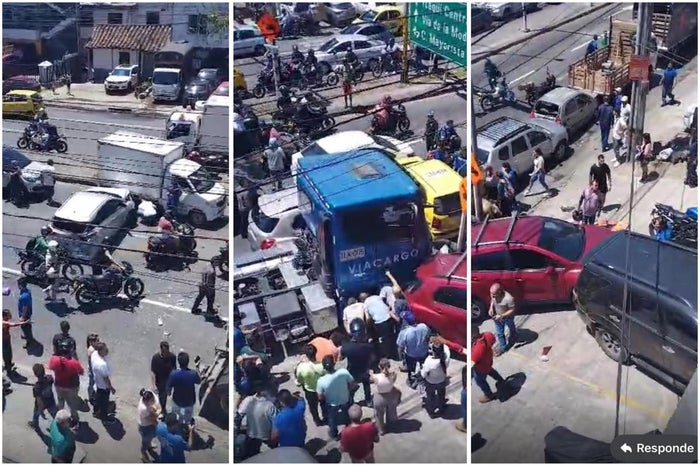 Un aparatoso accidente de tránsito se registró en el barrio Guayabal de Medellín. Al menos 14 vehículos y 2 motocicletas se vieron involucrados en la colisión, dejando como saldo dos personas fallecidas y cuatro lesionados. Los heridos fueron trasladados a centros asistenciales cercanos.