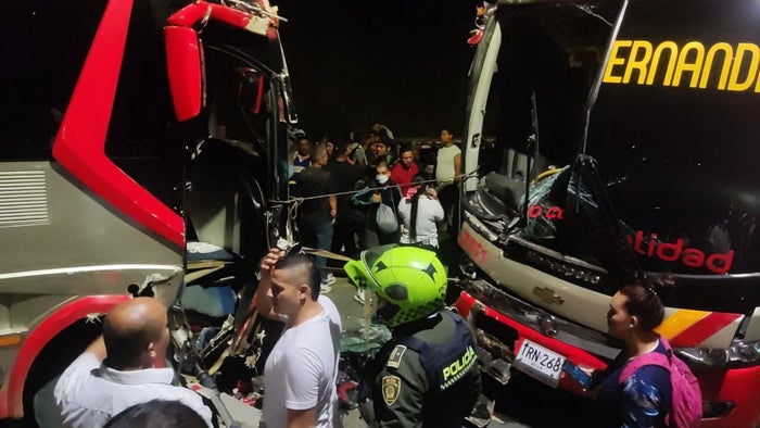 La colisión de dos buses de la empresa Gómez Hernández provocó las lesiones de doce pasajeros, informaron las autoridades del municipio de Santafé de Antioquia.