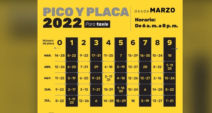 Las autoridades administrativas indicaron que el taxista podrá circular el día del pico y placa sin pasajeros, la única condición es que tengan un aviso legible en la parte trasera que comunique que el vehículo se encuentra en mantenimiento. El decreto no rige para taxis eléctricos, y los que usan gas natural.