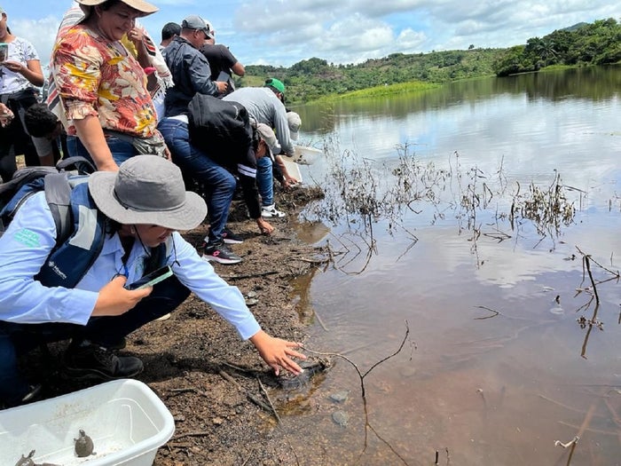 "En el municipio de Nechí, Bajo Cauca Antioqueño, exactamente en la ciénaga Popales, se llevó a cabo la liberación de más de tres mil tortuguillos de río, una especie en vía de extinción. Todo esto se hace con el propósito de contribuir con la repoblación de la fauna, y asimismo, la conservación de las especies que se encuentran en vía de extinción".
