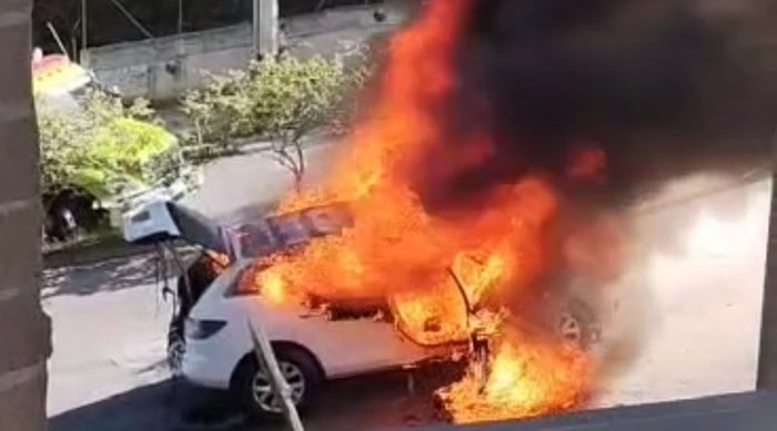 En videos compartidos a través de las redes sociales se evidencia el carro envuelto al 100% en llamas.