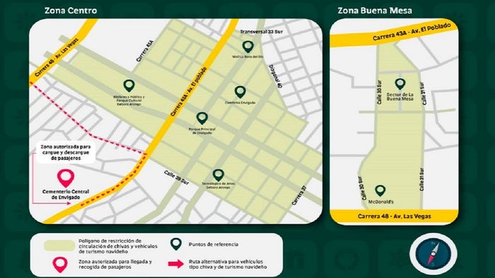 Informó la Secretaría de Movilidad de Envigado que hasta el 31 de enero del próximo año está restringido el tránsito y estacionamiento en el sector de la Buena Mesa y la Zona Centro, para vehículos tipo bus y buseta de servicio especial de pasajeros, así como los de servicio mixto más conocidos como escaleras o chivas, que desarrollan actividades de turismo.