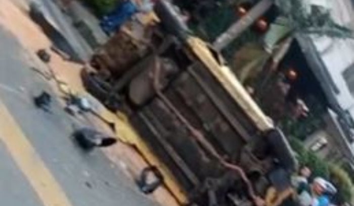 El hecho ocurrió en el barrio Cabañas de Bello, al parecer el vehículo furgón se quedó sin frenos colisionando con una motocicleta, un taxi que quedó en pérdida total y volcado en el sitio y dejó siete personas heridas, hasta el momento sin víctimas mortales.