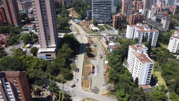 José Aroca, director técnico de obras de Fonvalmed, informó que la Avenida 34 con a la altura de la Loma de Los Parra tendrá 820 metros de vía, con dos carriles para la circulación de vehículos y andenes laterales con un ancho entre dos y tres metros. Esta obra avanza en un 31 por ciento, agregó el funcionario.