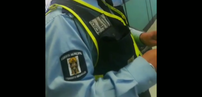 El presunto infractor persiguió al agente al interior de las instalaciones, donde lo señaló de actuar incorrectamente al retener sus documentos, esto generó una reacción airada por parte del uniformado, quien le arrebató el teléfono celular con el que el ciudadano captaba el momento de su reclamo.