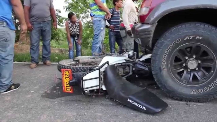 Según las primeras versiones, el conductor de la camioneta habría intentado esquivar a la motocicleta, sin embargo, no logró evitar la colisión. El fuerte impacto dejó a los dos motociclistas con graves lesiones.