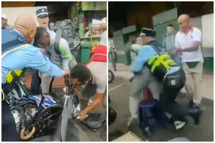 En la grabación se muestra al motociclista que, en medio del operativo, agredió a los guardas pese a no contar con la documentación necesaria. En las imágenes se muestra, incluso, que, en un momento de desesperación, el motociclista cogió un palo e intentó pegarles a los funcionarios