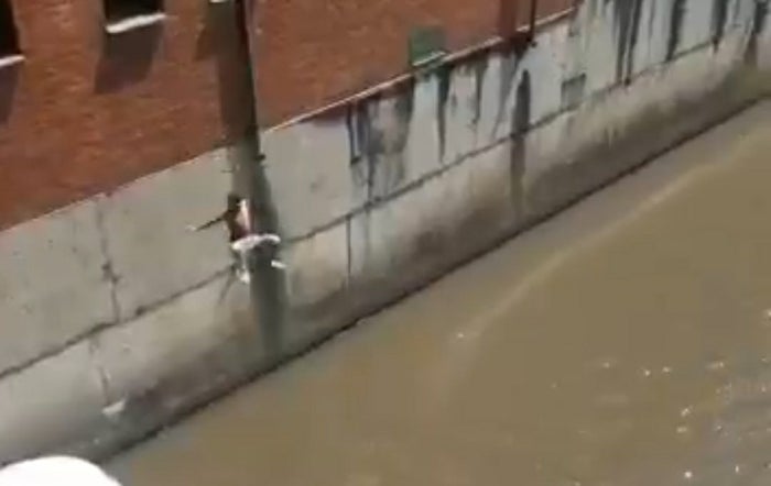 En un video que se hizo viral en las redes sociales, se ve como un hombre sin camisa, se subió a una de las ventanas de la estación Industriales del Metro y se lanzó al Río Medellín.