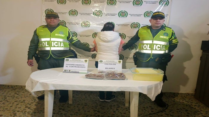 Mujer fue capturada por las autoridades con más de mil gramos de cálculos de bovinos avaluados en más de 300 millones de pesos