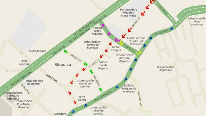 - La calle 55 sur funcionará de forma bidireccional entre la carrera 43A y la carrera 48 (avenida Las Vegas). Esta vía facilitará el acceso y salida de ese sector, y será clave para la redistribución de la actividad vehicular en la zona.