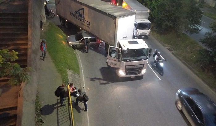 El accidente de tránsito involucró un vehículo particular, que quedó debajo de una tractomula. Según los primeros reportes, por fortuna no hubo personas lesionadas.