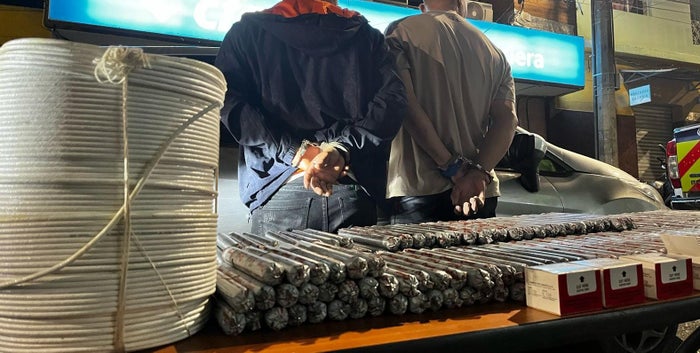 Los detenidos, de 28 y 31 años, fueron sorprendidos mientras se desplazaban en un vehículo en el que transportaban: 228 barras de Indugel, 400 detonadores ineléctricos y 2 rollos de mecha de seguridad, cada uno de 500 metros.